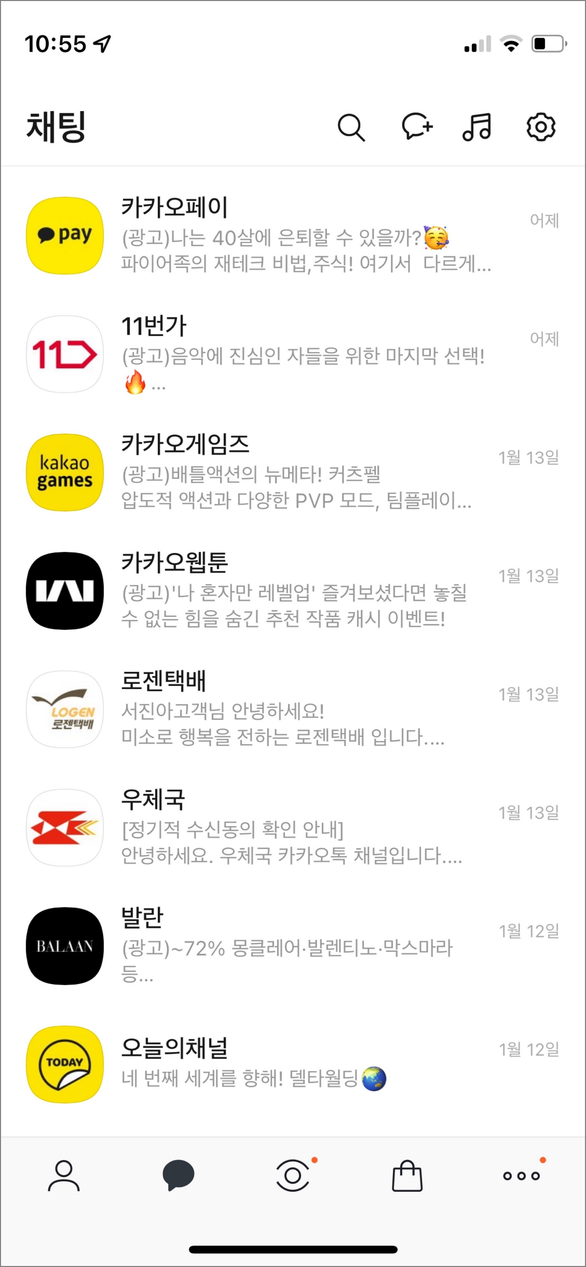 카카오톡을 하다 보면 무수히 많은 채널 메시지 때문에 보기 싫은 경우가 있습니다. 저 역시도 어떤 프로모션이나 이벤트 때문에 채널을 등록했다가 무분별하게 뜨는 채널 광고 메시지 때문에 차단하기로 했는데요. 아이폰 화면으로 설명드리겠습니다.