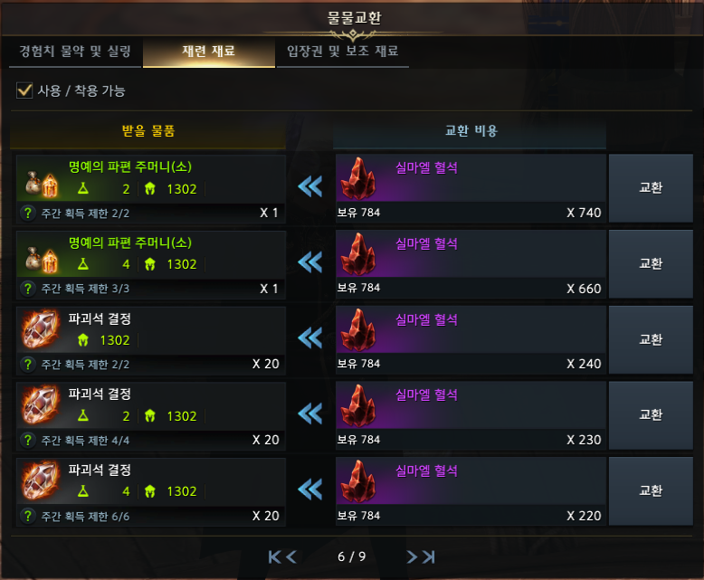 로웬 대륙 어금니의 강에 있는 실마엘 수정 교환 상인 제이슨에게 실마엘 수정으로 교환 가능합니다. 실마엘 수정은 로웬 주간퀘스트 및 평판을 통해 얻을 수 있습니다.