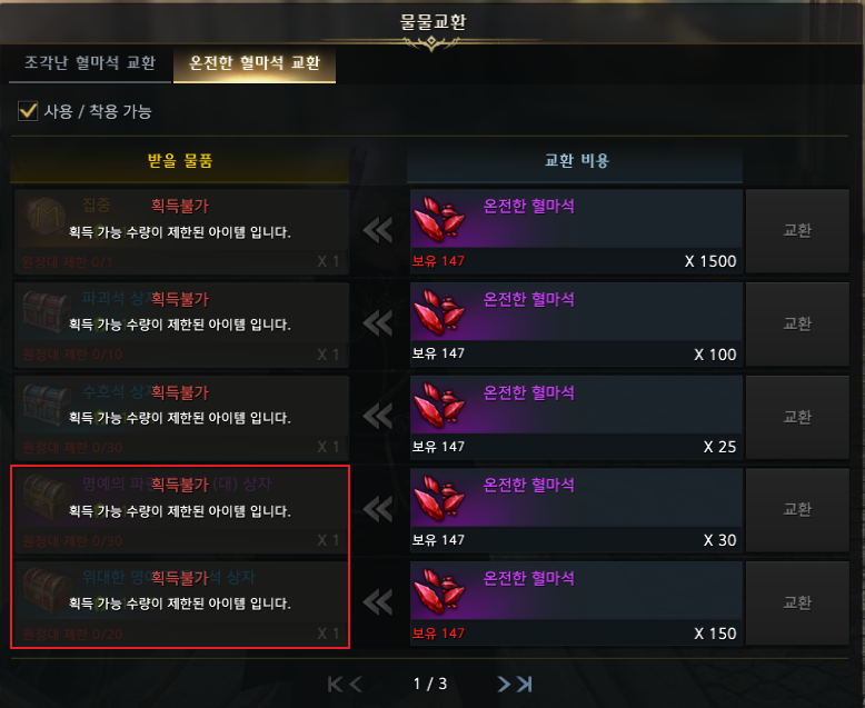 다음은 길드을 들어야 가능한 방법입니다. 일단 길드에 들어갔다면 주간 단위로 혈석 분배를 통해 실마엘 혈석을 얻을 수 있습니다. 대도시에 있는 실마엘 혈석 교환 상인에게 주간 획득 제한 수량만큼 교환 가능합니다.
