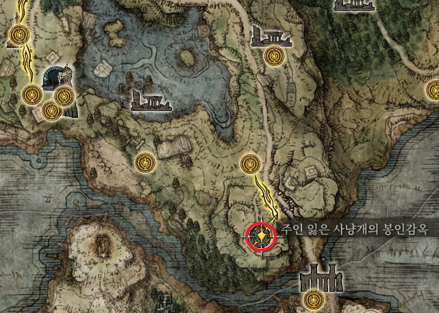림그레이브 남부 가기 전 아길 호수 남쪽 언덕에 올라가면 주인 잃은 사냥개의 봉인 감옥이라는 곳이 있습니다.