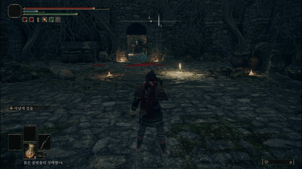 안으로 들어가서 보라색 빛이 나는 곳으로 이동하면 보스인 사냥개기사 대리윌이 나타납니다. 보스를 잡으면 사냥개기사 대리윌이 쓰고 있는 검인 사냥개의 긴 이빨을 얻을 수 있습니다. 상당히 빠르게 공격하는 스타일이고 순간이동도 하니 조심하세요. 방패로 막으면서 싸우다보니 한번씩 터지는 출혈이 아프네요. 패링 연습하기는 좋은 것 같습니다.