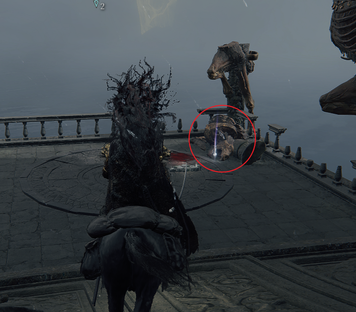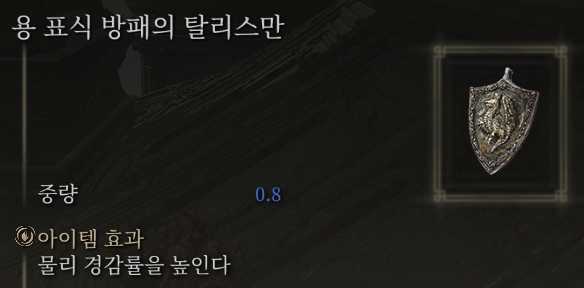 바닥에 내려가면 튀어나온 부분에 시체가 있는데 친퀘이다를 얻을 수 있고 우측으로 조금만 더 가면 용 표식 방패의 탈리스만 얻을 수 있습니다.
