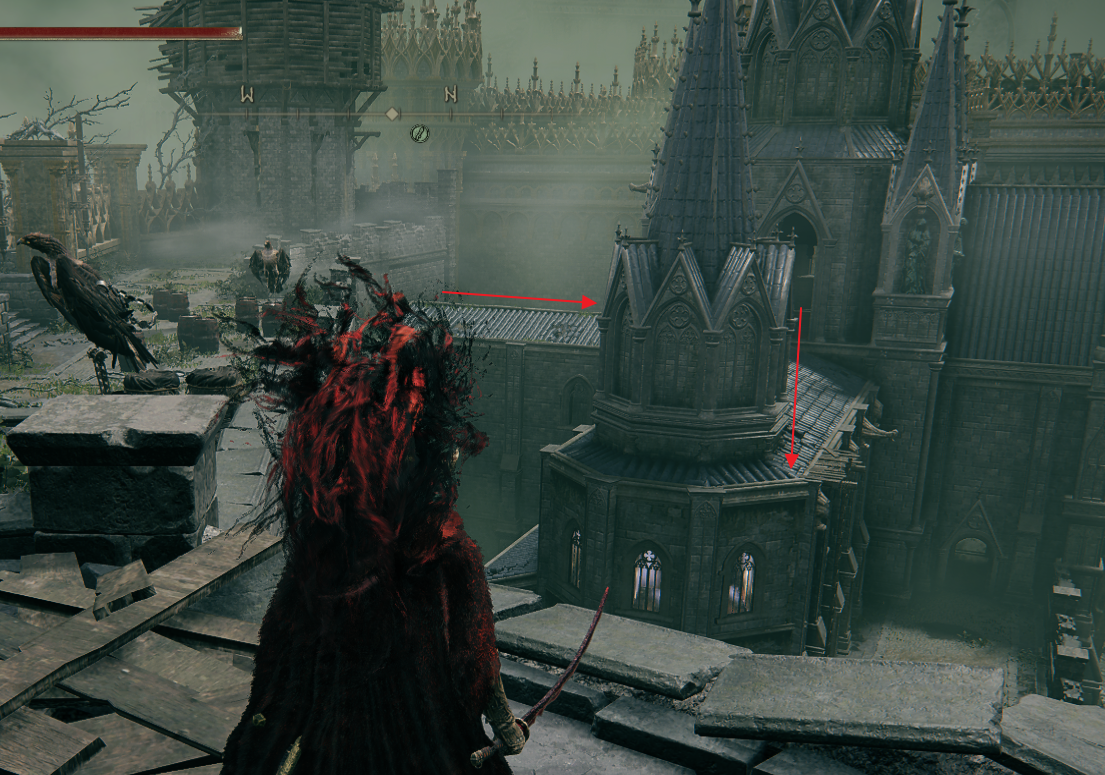 승강기측 방에서 나와 우측 뒤로 돌면 아래로 내려갈 수 있습니다. 난간을 타고 쭉쭉 바닥까지 내려가시면 됩니다. 중간보스급 몹도 있으니 조심하세요. 죽음의 왕자의 부스럼이라는 탈리스만이 있는 곳에 혈흔을 조사하면 로지에르가 죽임을 당하는 것을 확인할 수 있습니다. 이제 첫 번째 메인보스인 고드릭을 처치하시면 되겠습니다.