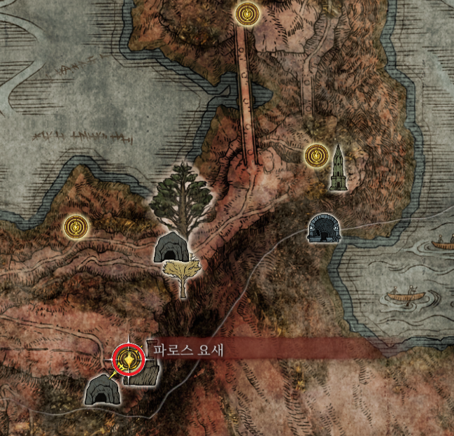 덱타스의 부절(우)은 케일리드 파로스 요새 꼭대기에서 얻을 수 있습니다.