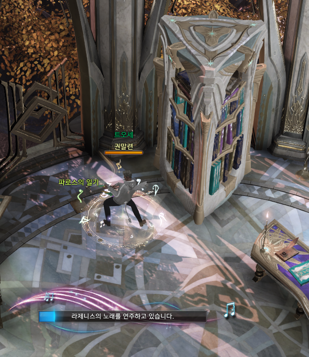 12번 위치에 있는 책장 앞에서 라제니스의 노래를 연주하면 모코코가 나타납니다.