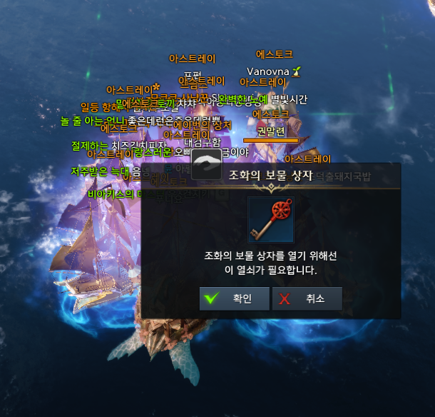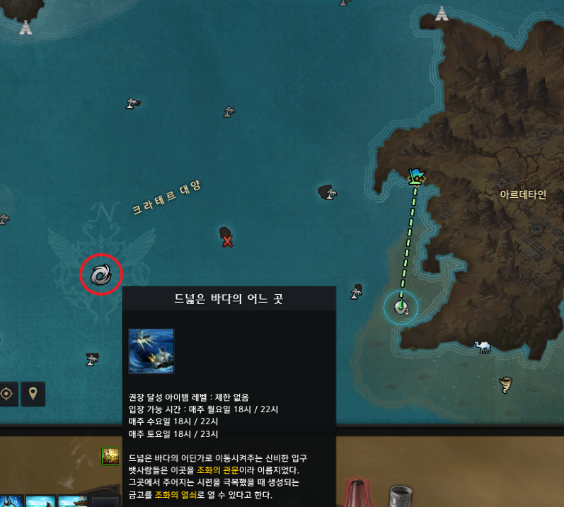 힌트에서 알 수 있듯 기에나의 바다에서 할 수 있는 아르데타인 항해 협동을 통해 조화의 열쇠를 획득해야 합니다. 이후 매주 월, 수, 토요일에 갈 수 있는 조화의 관문(아르데타인 좌측)에 입장하여 미션 수행 후 조화의 보물 상자를 열면 완료할 수 있습니다.