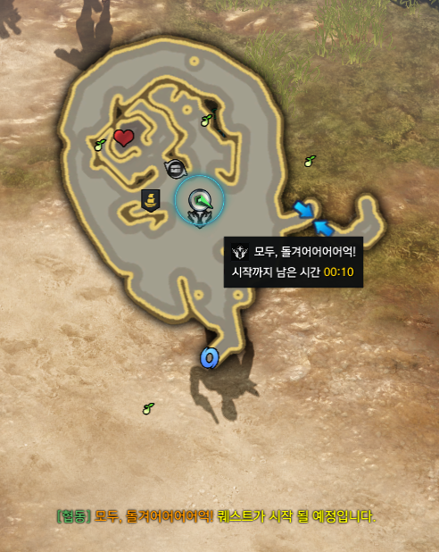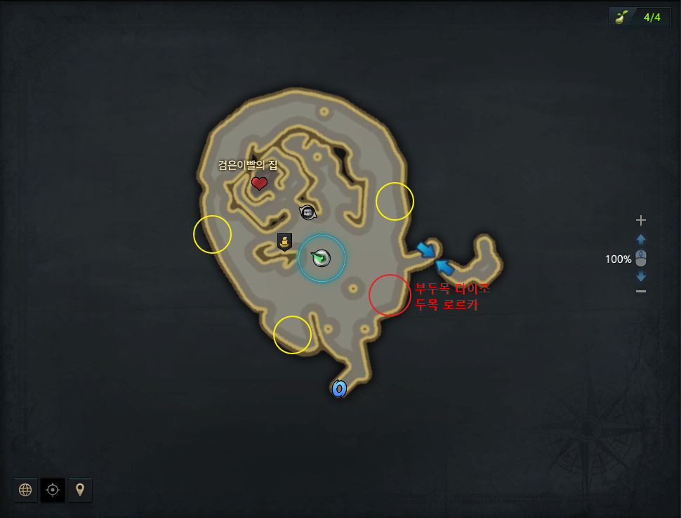 두목 로르카와 부두목 타이조는 모두 5시에 나타나고 노란색 원은 일반 상어 해적단 리젠 위치입니다. 협동퀘를 완료하면 약간의 실링과 원정대 경험치를 획득할 수 있으니 빠르게 끝내고 에포나의뢰를 완료하세요.