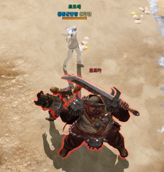 첫 번째 협동 퀘스트인 모두, 돌겨어어어어억! 이 시작되면 섬 5시 방향에 부두목 타이조와 해적단이 나타납니다. 처치해주시면 바로 에포나의뢰를 완료할 수 있습니다. 첫 번째 협동 퀘스트를 완료하면 바로 두 번째 협동퀘인 붉은 상어 해적단이 왔다!가 시작됩니다. 두목 로르카를 잡을 수 있습니다.