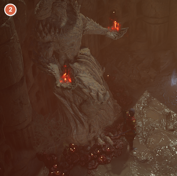 1번 석상의 경우 눈에 파란불이 들어옵니다. 2,3번은 손에 붉은 불이 들어옵니다.