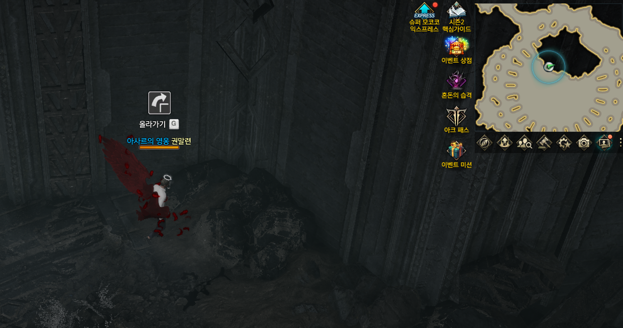 쿠르잔 남부 스토리를 진행하면 얻을 수 있는 아사르의 영웅 칭호를 적용하면 해당 위치에 올라가기 버튼이 활성화됩니다.