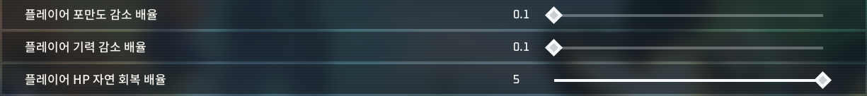 다음으로 기력이 너무 빨리 빠지는 감이 있어 기력 감소와 포만도 감소 배율은 낮추고 자연 회복 배율은 높였습니다.