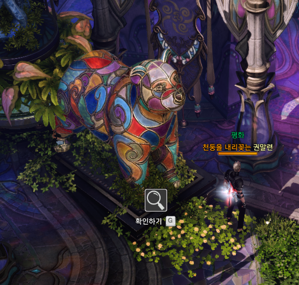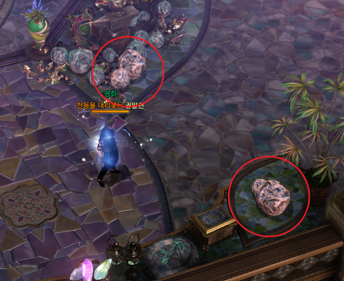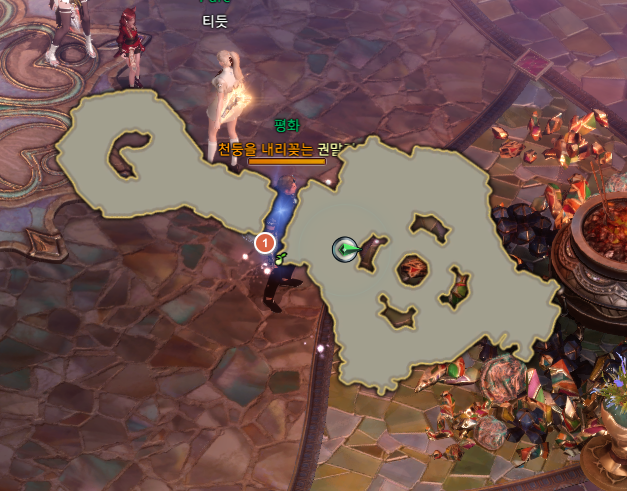 파란색 번호가 있는 곳에 있는 알록달록한 석상을 확인하면 각각 기운을 얻을 수 있고 4개를 모으면 상서로운 기운을 얻을 수 있습니다.