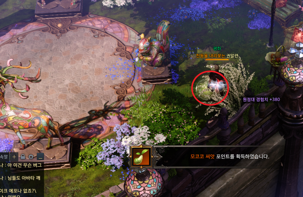 상서로운 기운을 얻은 상태에서 장로원 가운데로 가면 모코코가 있는 곳으로 갈 수 있는 포털이 열립니다. 안으로 들어가서 다람쥐 석상 우측 3시 방향에 모코코 있어요.