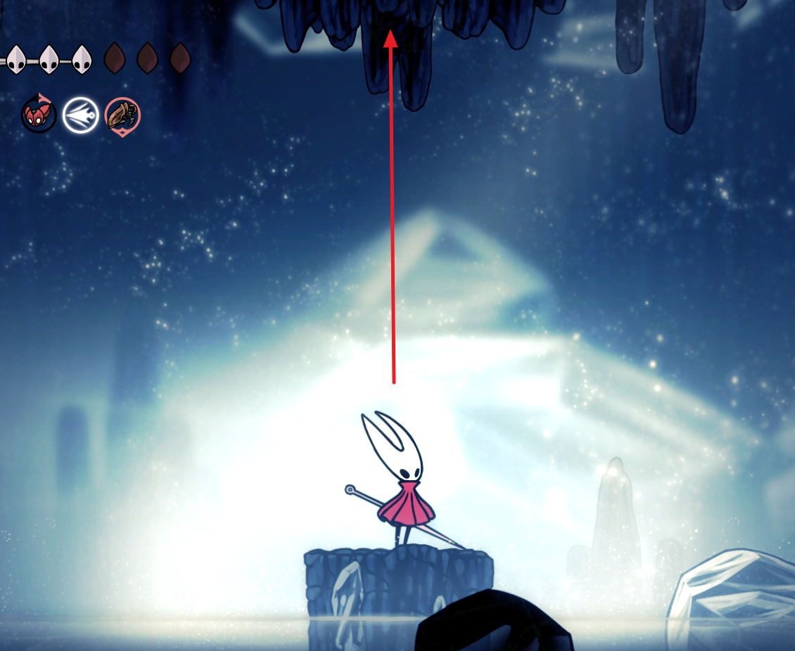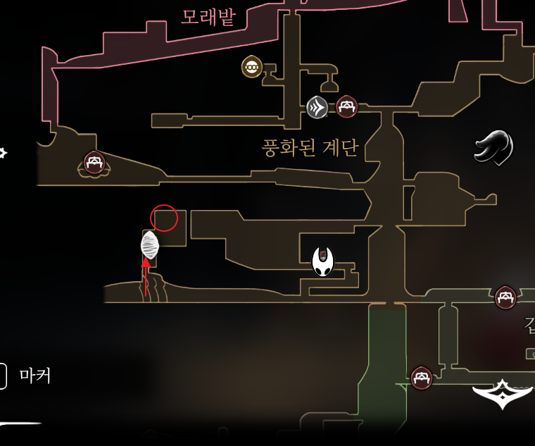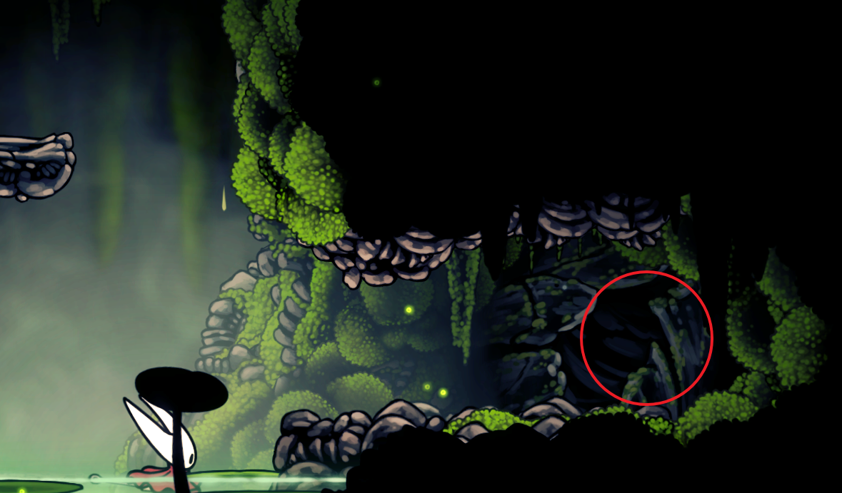 뼈의 바닥에서 아랫쪽 길로 벌레의 길로 들어갑니다. 천장에서 독 뿌리는 몹을 지나 바로 아래로 내려가면 바닥 우측에 숨겨진 길이 있습니다.