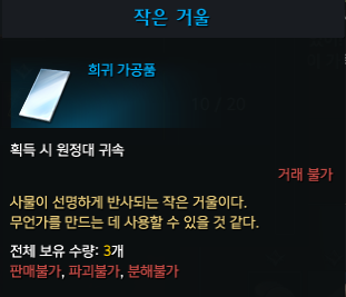 에포나 의뢰를 모두 완료하면 작은거울 3개와 작은 통을 보상으로 얻을 수 있습니다. 에포나 의뢰 NPC가 있는 곳 위로 올라가면 만화경 제작 NPC가 있습니다. 작은거울과 작은 통, 빛나는 유리 구슬 5개는 만화경을 제작하는데 쓰입니다.