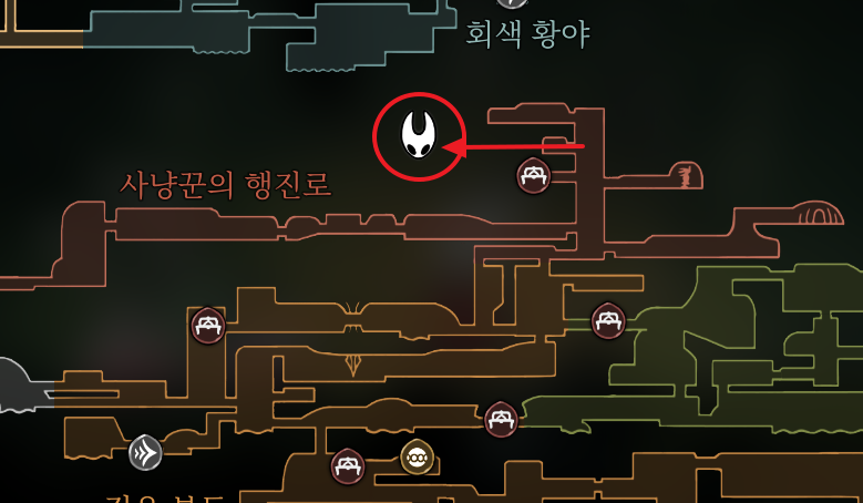 실크송 초반에 쓸 수 있는 방어구인 갈라진 가면 위치입니다.