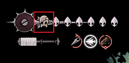 휴식의자에서 갈라진 가면을 착용하면 체력바가 위 이미지처럼 변하고 마지막 한칸이 남았을 때 한번더 방어할 수 있습니다.