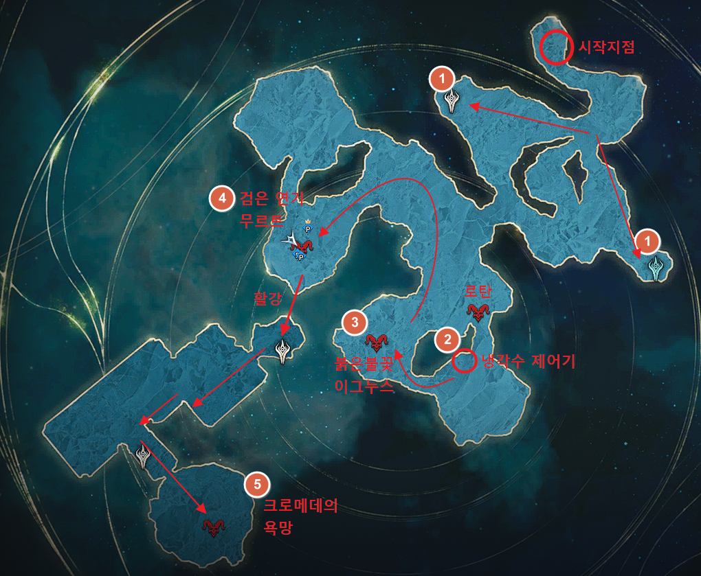 유일 무기 늘무를 파밍할 수 있는 던젼인 불의 신전 보스몹 가는 방법입니다. 아래 번호 순서대로 진행해주세요.