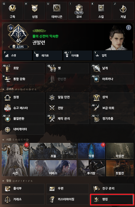 1. 먼저 메인 메유 우측 하단에 랭킹 메뉴로 들어갑니다.