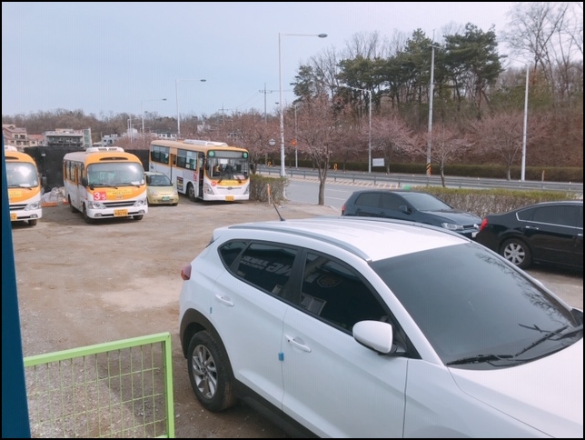 주차할 수 있는 공간도 있습니다. 꽤 넓긴 한데 버스도 있고 이미 차가 많이 주차되어 있어서 도로가에 세워놨습니다.