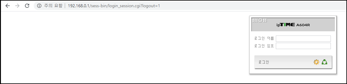 1. 인터넷 입력창에 192.168.0.1을 입력합니다. 첫 실행시 로그인 이름: admin 암호: admin으로 되어 있습니다. 로그인을 합니다.