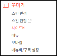 티스토리 관리자모드의 꾸미기 > 사이드바 메뉴로 갑니다.