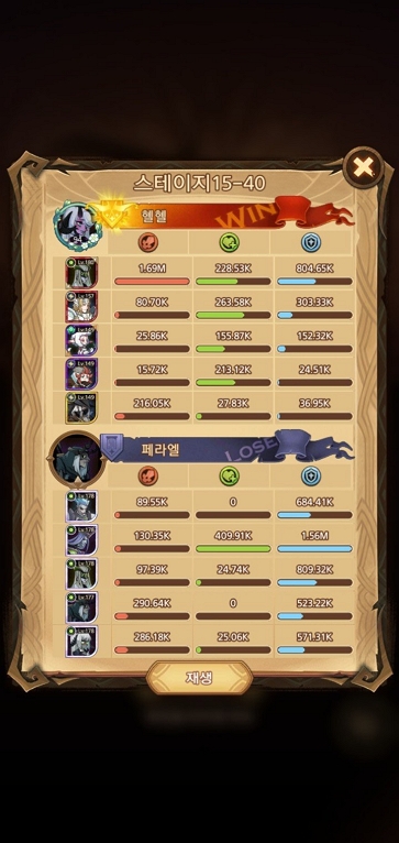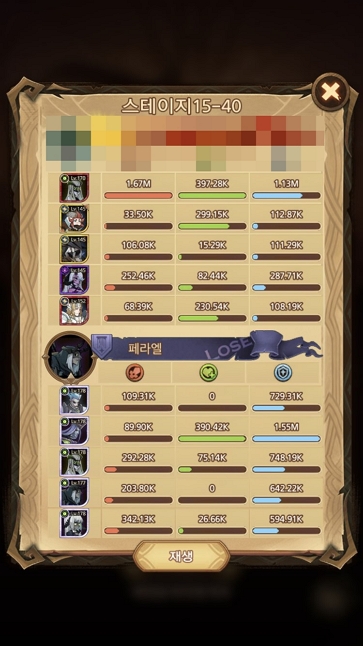 다른 분들 보면 엘프 덱으로 삼신기인 아든, 네모라, 라이카를 써서 클리어했더라고요. 기본적으로 15-40은 그레이브본 영웅이기 때문에 상성에 유리한 엘프덱을 쓰는 것을 전제로 합니다. 아든이 적 3명을 뿌리 휘감기로 묶고, 네모라를 써서 페라엘을 매혹시켜서 잡는 방법입니다. 페라엘이 보스여서 그런지 엄청납니다. 저는 아든, 네모라, 라이카가 에픽밖에 안돼서 그런지 스킬을 쓰기도 전에 죽어서 어쩔 수 없이 유니크+ 인 타시를 넣고 잡았습니다.