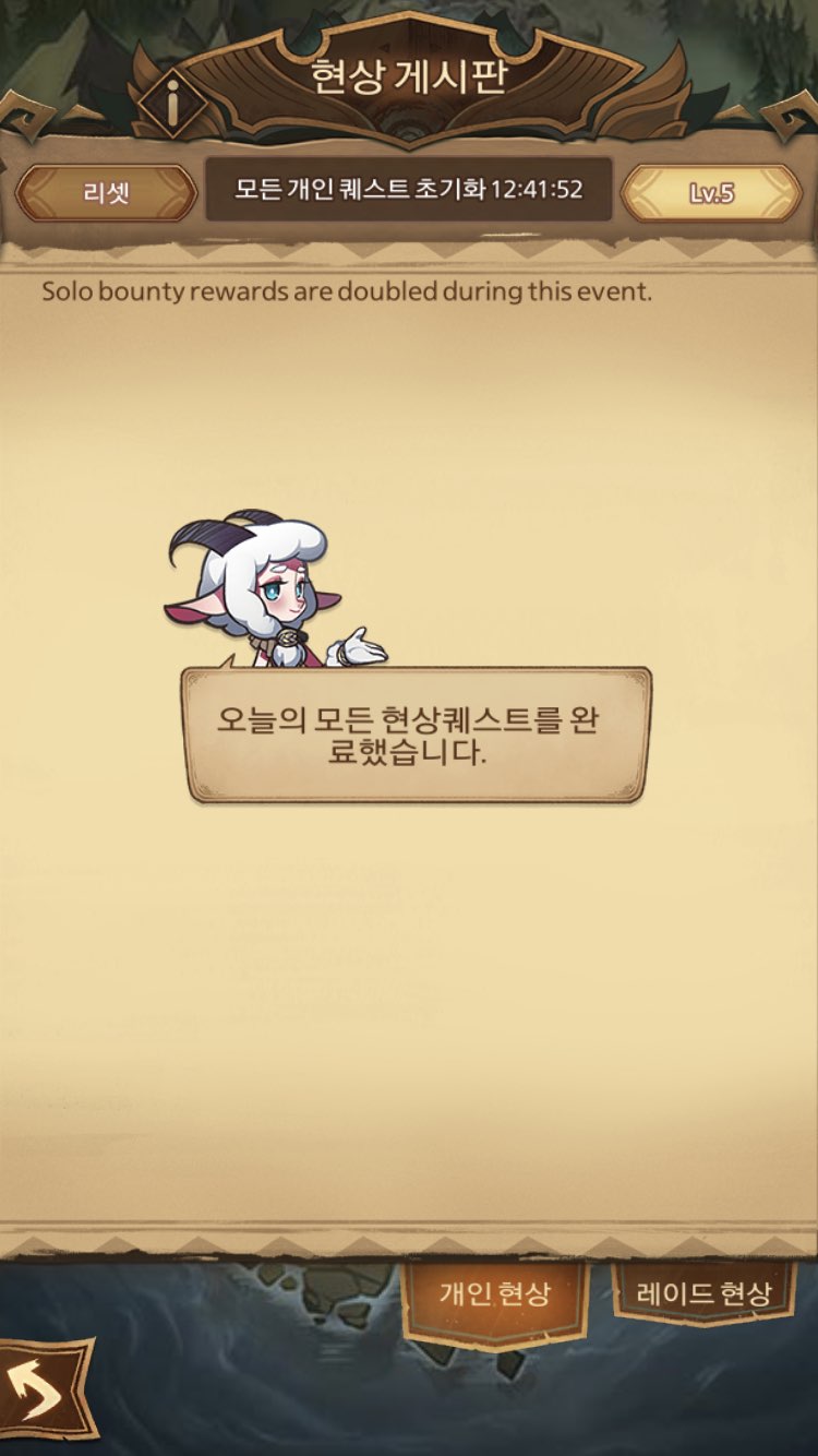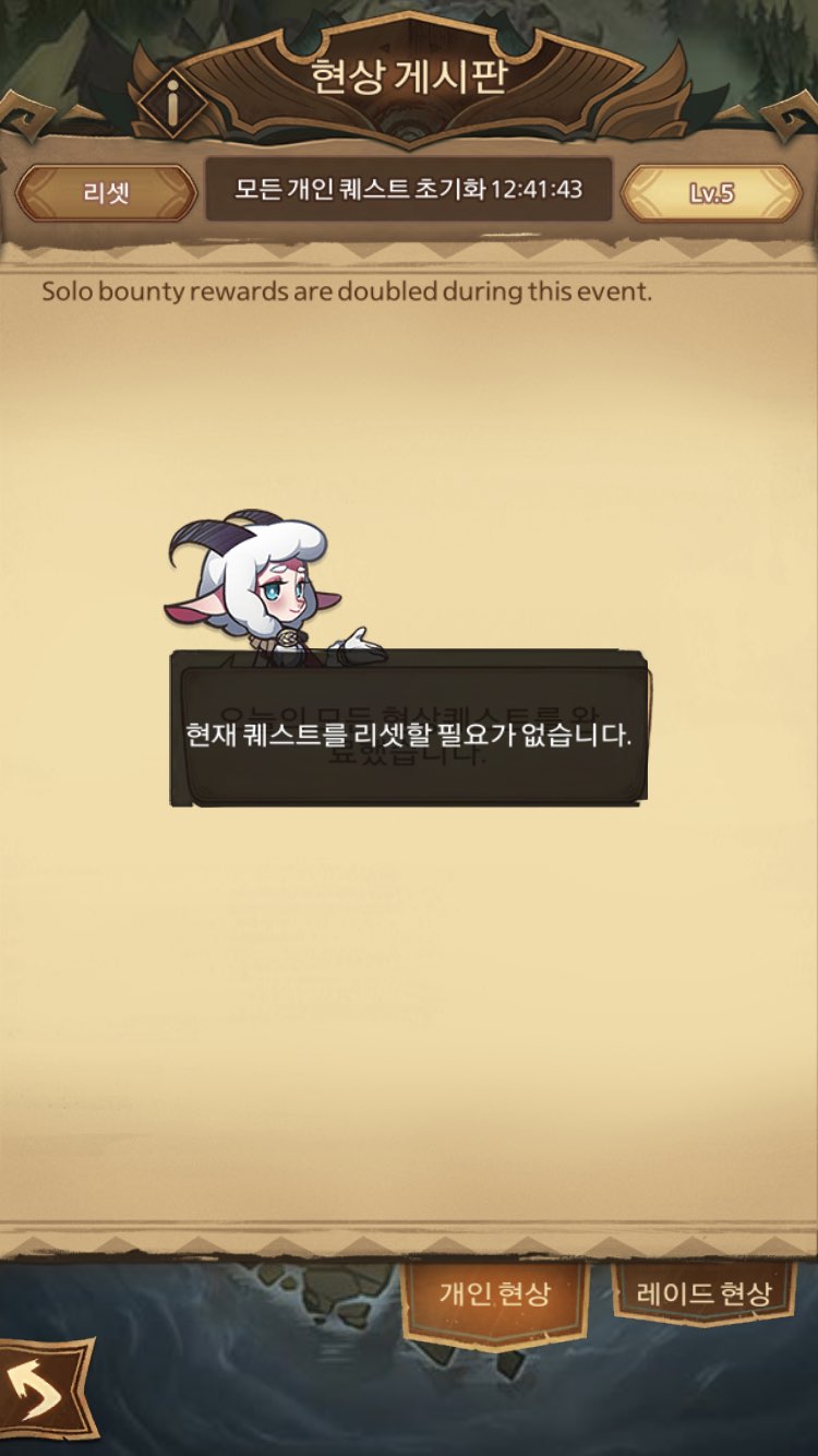 현상게시판의 모든 현상퀘스트를 완료하고 리셋 버튼을 눌렀을 때