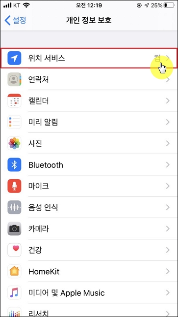마지막으로 위치 서비스 관련된 설정을 해제 하는 것입니다. 아이폰을 사용하면서 위치 서비스 관련된 앱들이 많이 나오고 있습니다. 대표적인 서비스가 내비게이션 어플입니다. 이렇게 자주 사용하는 앱들은 상관이 없지만 위치 서비스 기능이 크지 않은 앱 같은 경우는 설정을 제한해 주는 것이 좋습니다.