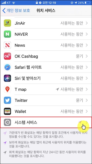 앱별로 설정이 끝났으면 하단에 있는 시스템 서비스에 들어갑니다.