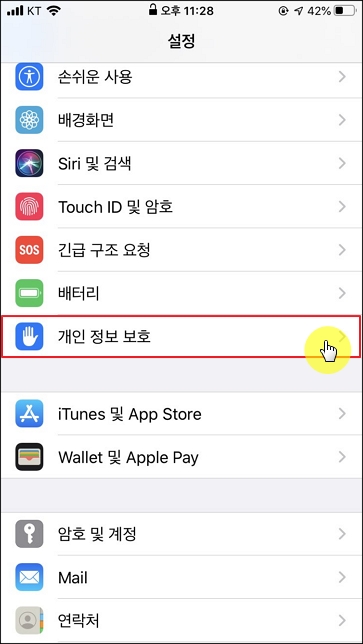 1. 설정 앱 > 개인 정보 보호를 클릭합니다.