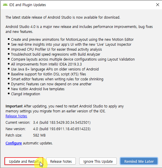 안드로이드 스튜디오 4.0 업데이트 방법