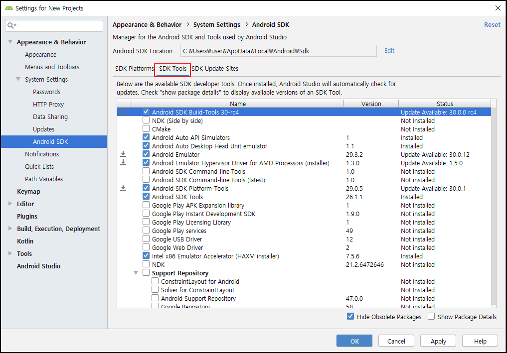SDK Tools 업데이트 방법