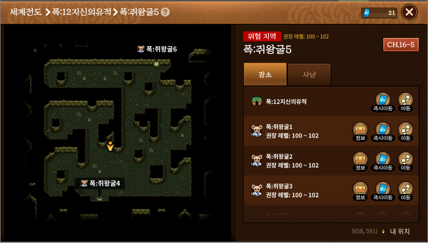 안녕하세요. 토끼파파입니다. 바람의나라:연이 출시된 지 열흘이 되어가고 있습니다. 세류 서버 그룹 홍보 창을 보니 폭 쥐, 폭토를 가는 그룹이 많고 폭 닭도 모으는 그룹이 종종 보이고 있습니다. 레벨 95~105 사이에 있는 분들은 아마 세작퀘, 흉가퀘를 하거나 도안작을 하실 텐데요. 이 밖에 경험치를 빨리 모아서 레벨업을 하고 싶으신 분들은 폭쥐나 폭토를 가게 됩니다. 폭:12지신유적에 있는 사냥터이고 권장 레벨은 100~102입니다.