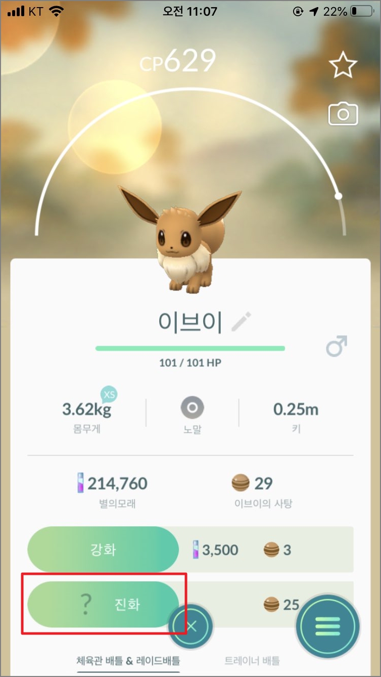 [포켓몬고] 이브이를 에브이, 블래키로 진화 시키는 방법