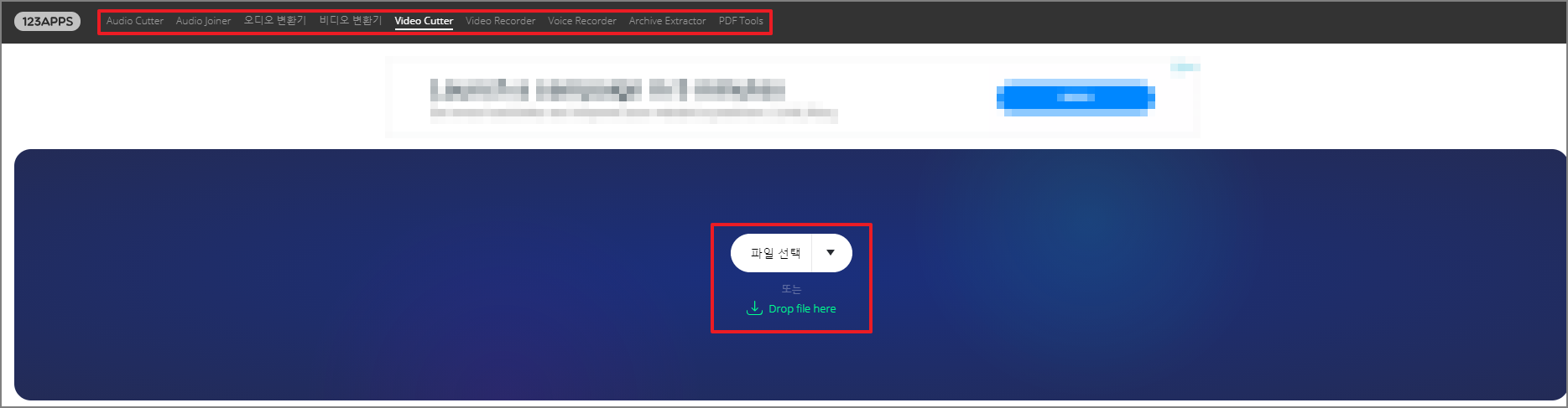 중간에 파일선택을 클릭하고 영상을 불러옵니다.