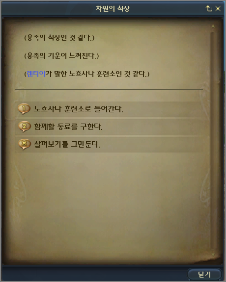 파티가 생성되었으면 "노르사나 훈련소로 들어간다"를 클릭하면 됩니다.
