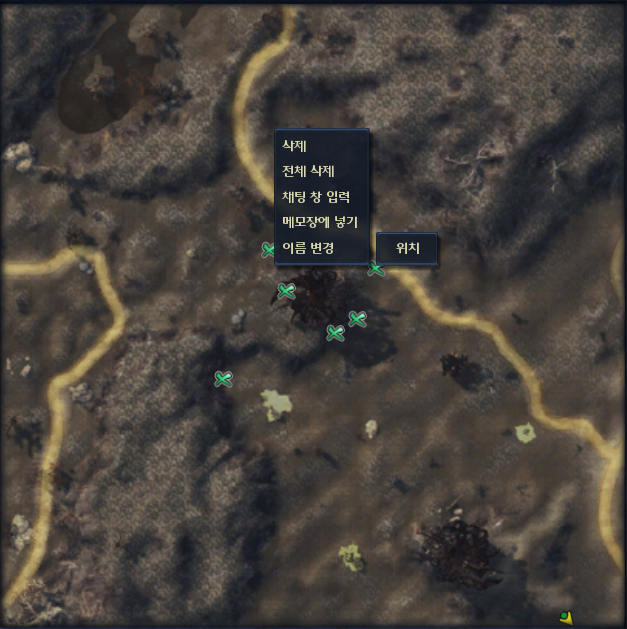 위치를 삭제하고 싶을 때는 찍은 위치에서 마우스 우클릭을 하면 삭제, 전체삭제를 할 수 있습니다.
