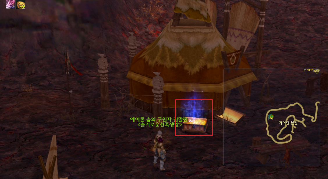 첫 번째 위치입니다. 많은 사람들이 대부분 알고 있는 위치인데요. 맵에 표시된 위치로 이동해야 합니다. 카이단 본진에서 쭉 가다가 왼쪽에 다리를 건너서 오른쪽 벽을 타고 가다보면 나옵니다.