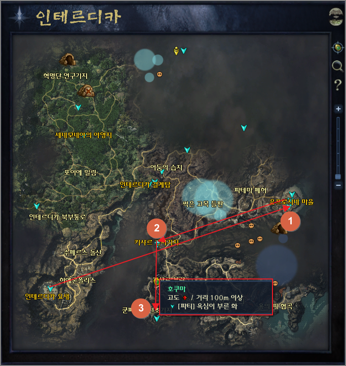 폭포퀘는 인테르디카 호쿠마한테 받을 수 있습니다. 인테르디카 요새에서 유프로시네 마을로 이동 후 키샤르 감시기지로 이동합니다. 키샤르 부락을 지나 아래 쿤파파의 전초기지쪽에 있습니다. 몹도 쌔고 마족도 있기 때문에 파티를 구해서 하시는 걸 추천합니다.