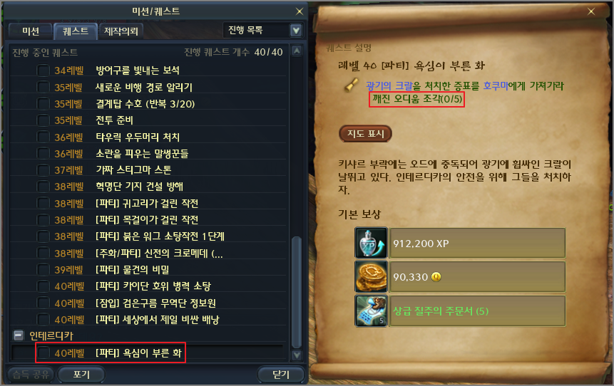 퀘스트는 파티로 간다면 쉽게 클리어 가능합니다. 깨진 오디움 조각 5개를 갖다 주면 되는데 주변에 있는 몹 5마리를 잡으면 얻을 수 있습니다.
