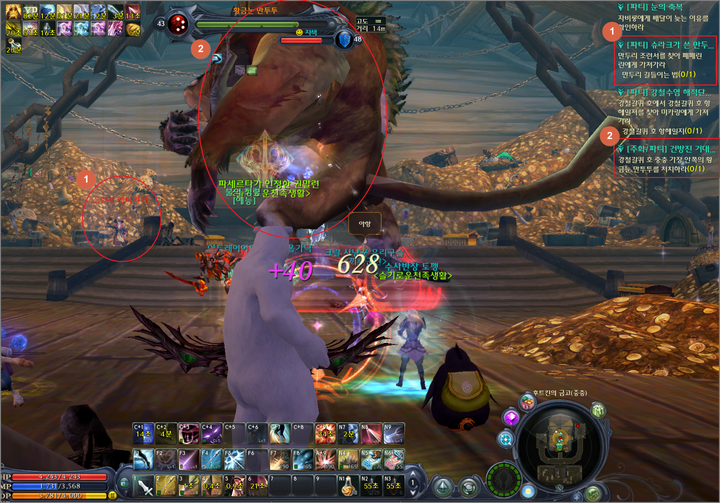 강철갈퀴 호 앞에 있는 NPC에게 파티 퀘스트를 받습니다. 중층에 있는 네임드인 황금 눈 만투투와 왼쪽에 있는 조련사 애니키키를 잡으면 완료되는 퀘스트입니다. 파티 창에 중층 퀘스트를 모집하는 파티에 들어가거나 모아서 가면 되는데 보통 중층까지 잡으면 시간도 오래 걸리고 퀘스트 이외에는 메리트가 없기 때문에 한번 갈 때 모두 완료하고 나와야합니다. 황금 눈 만투투를 처치하고 조련사 애니키키를 잡고 클릭하면 퀘스트 아이템을 얻을 수 있습니다.