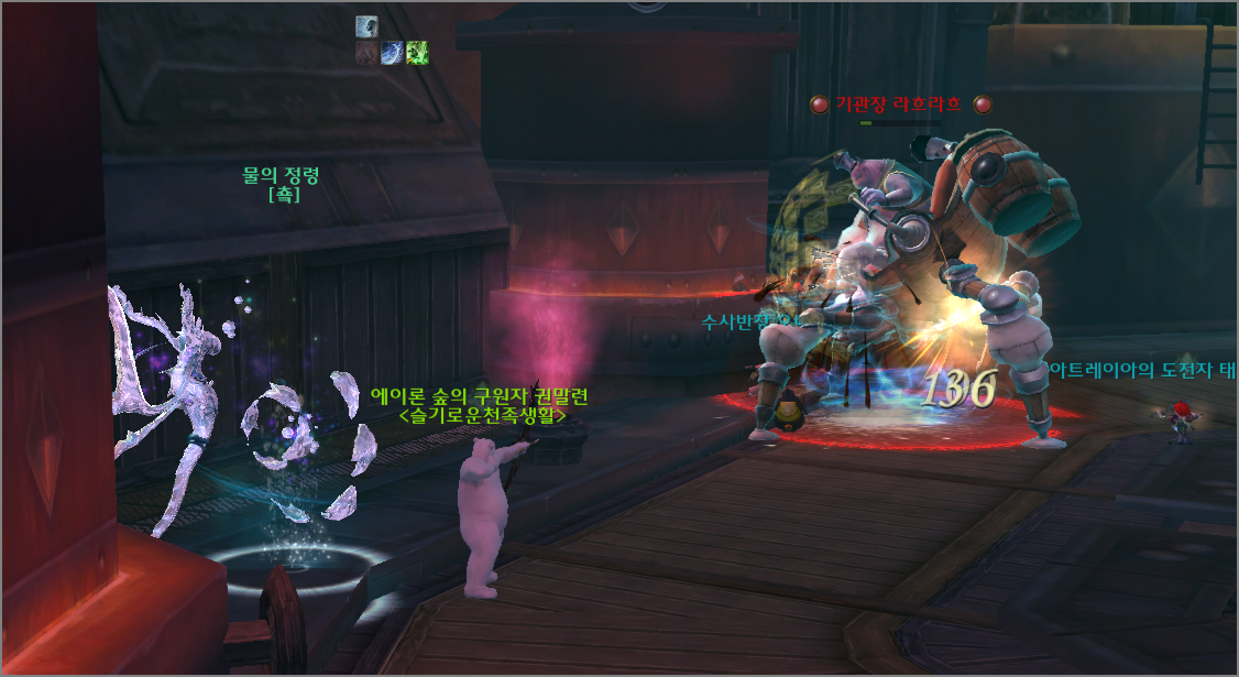 기관장 라흐라흐는 자리만 잘 잡으면 쉽게 깰 수 있습니다. 보통 입구 오른쪽에 첫 번째 기둥에서 탱커와 근접 격수가 자리를 잡고 바로 옆 기둥 구석에 원거리 딜러와 힐러가 자리 잡습니다. 라흐라흐가 중간에 벨브를 조작하기 위해 앞으로 이동하는데 따라가지 말고 자리를 고수해 주세요. 기둥에서 잡는 이유는 벨브 조작시 나오는 가스의 피해를 줄이기 위해서입니다. 중첩이 되지 않게 1~2개 가스만 맞으면서 잡아야 합니다. 탱커는 항상 네임드 머리 방향을 힐러, 원딜 반대로 향하게 하고 싸워줘야 합니다. 근접 격수도 힐 사거리가 닿도록 엉덩이 부분을 쳐야 합니다.