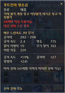 랜덤으로 공속이 붙은 무기가 뜬다고 합니다. 공속과 시속은 가장 중요한 옵션이기 때문에 이왕 먹는 거 공속, 시속이 붙은 무기를 먹어야 좋겠죠? 구경하기도 힘들긴 합니다. 저는 한 8번은 돌아야 1번 나오는 것 같네요.