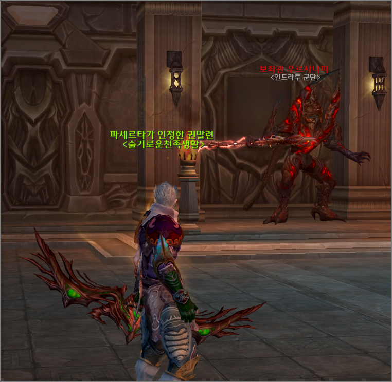 아조투란 요새 마법사가 있는 자리에 우르사나피라는 네임드가 있습니다. 여기 역시 양 옆에 몹 2마리를 우선 처치한 후 딜을 하시면 됩니다.