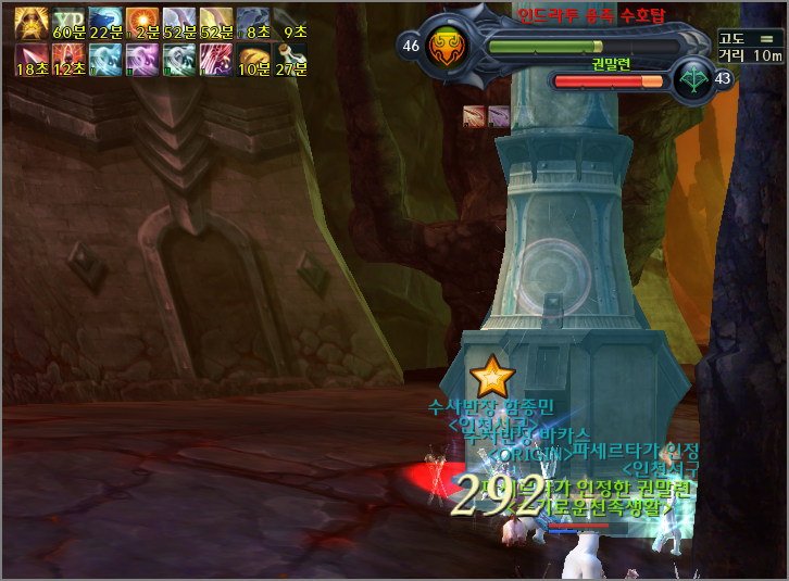 성문에 입장하기 전에 앞에 있는 몹들을 처리하고 성문 앞 인드라투 용족 수호탑 2개를 부셔야 합니다.