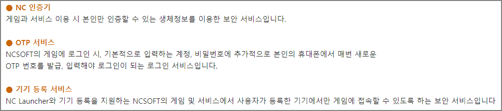 NC Launcher를 실행하고 우측 상단에 방패 모양 버튼을 클릭하여 위의 3가지 인증 서비스 중 한 가지를 선택하면 됩니다. 저는 기기 등록을 누르고 이용 중에 있습니다. 1분도 안 걸리네요.