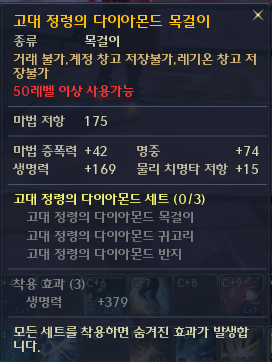 고대 정령의 사파이어 세트, 루비 세트를 줍니다. 목걸이, 귀고리, 반지를 모으면 세트 효과가 있네요.