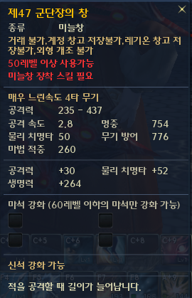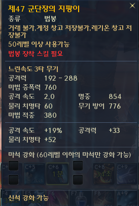 군단장의 창, 군단장의 검, 군단장의 단도, 군단장의 지팡이 옵션입니다.