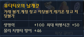 생명력 100, 비행시간 +50, 물치 방어가 붙어 있네요.